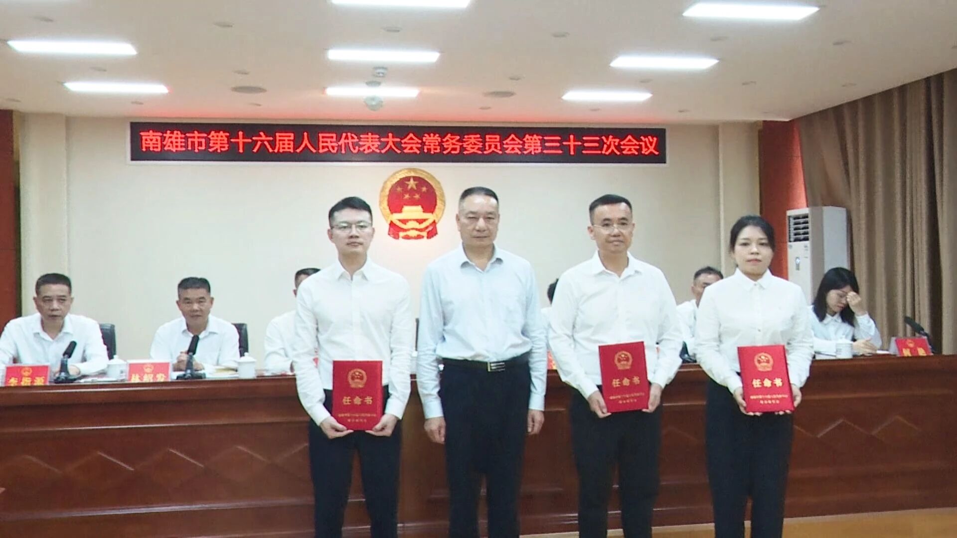 曾文辉为新任干部颁发了任命书。新任干部在常委会组成人员和列席人员的见证下,进行了庄严的宪法宣誓。