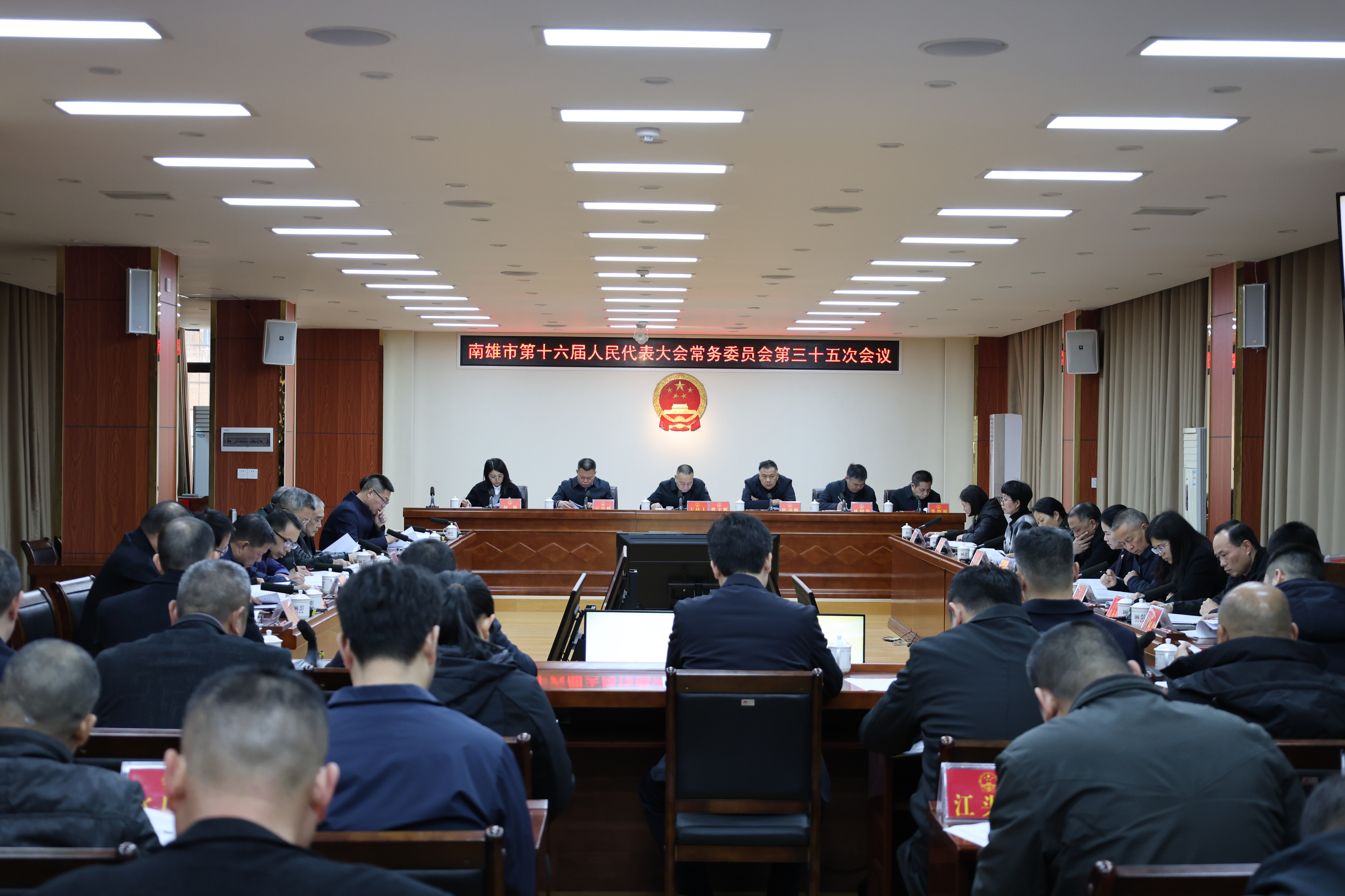 12月25日上午,南雄市第十六届人民代表大会常务委员会第三十五次会议召开。市人大常委会主任曾文辉主持会议,市人大常委会副主任叶凌峰、王高峰、林绍发、何艳、李指源及市十六届人大常委会组成人员出席会议。