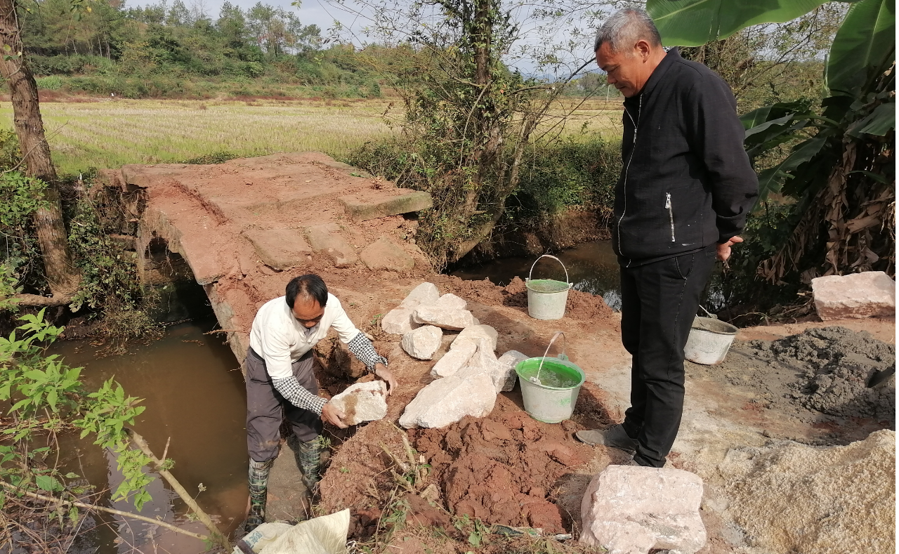 南雄市乌迳镇水松村新屋下桥加固前后对比图。